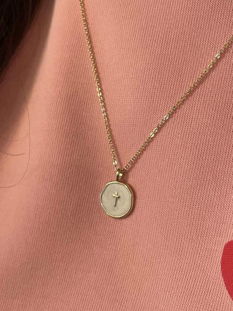 The perfect necklace to stack with other necklaces. It is a light weight necklace with a sleek chain. I love to stack it with other necklaces. Doesnβt pull at the hair around your neck. I forget Iβm wearing it