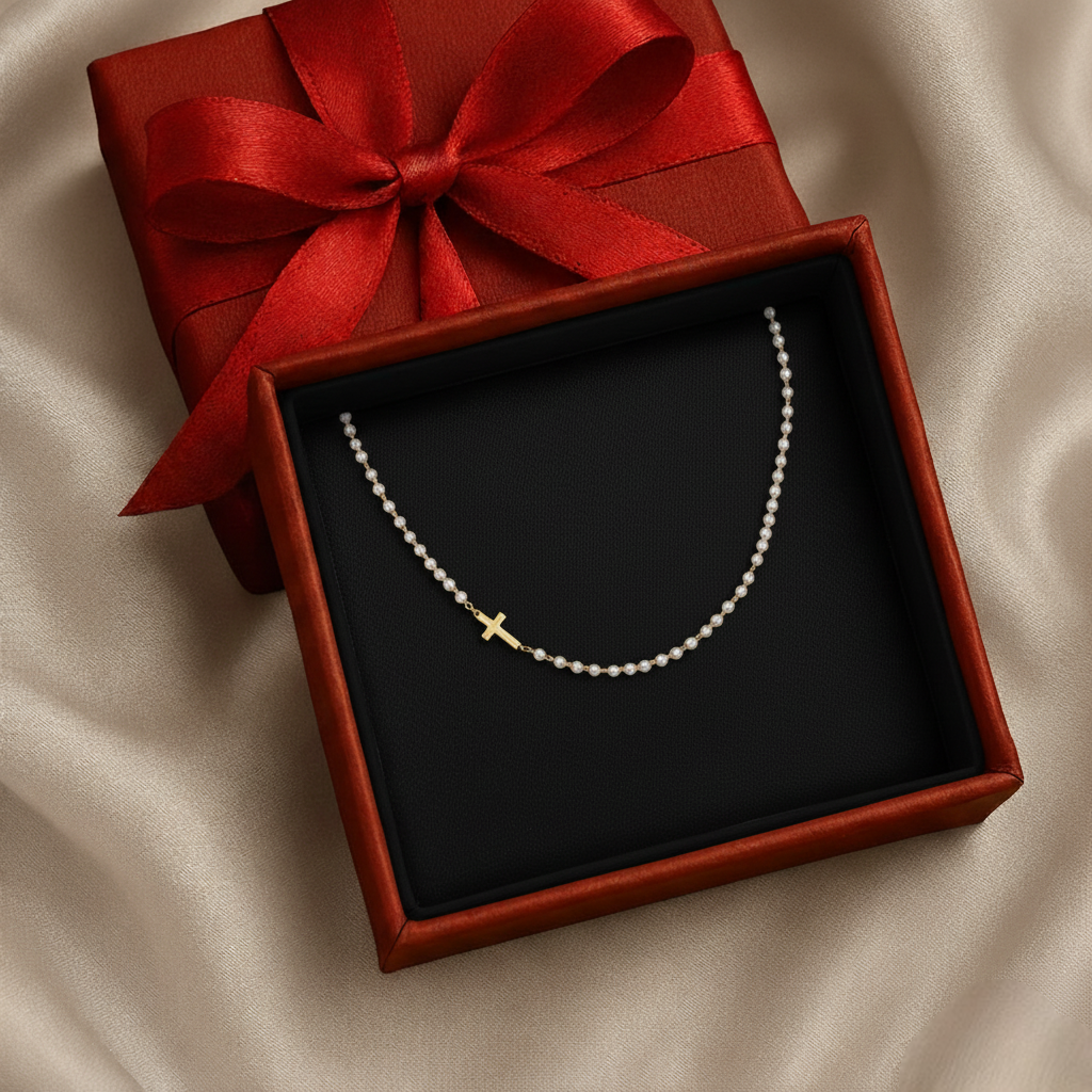 There’s something about pearls that never goes out of style. Paired with a delicate cross, this necklace blends classic elegance with meaningful design.
