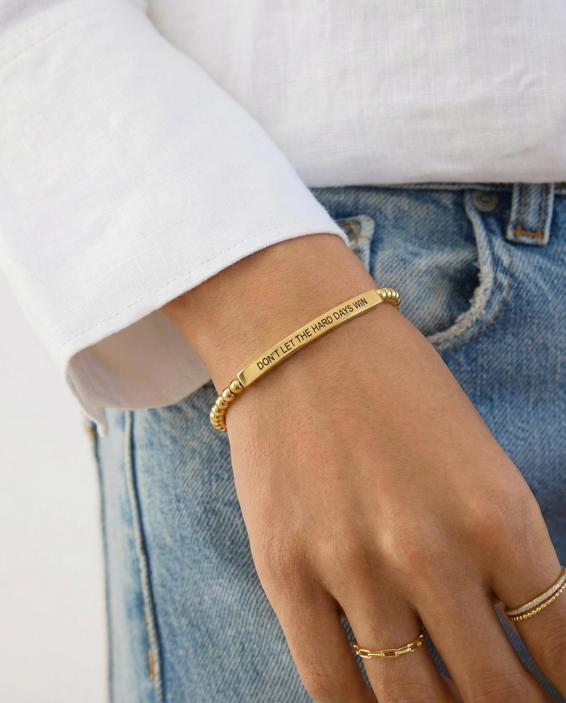 Our stainless steel based jewelry is tarnish and water resistant, meaning caring for your pieces is simple. Avoid contact with strong chemicals and cleaning agents (detergent, bleach, perfume) as these solutions may damage the layer of gold or silver plating and will cause tarnishing or discoloration.